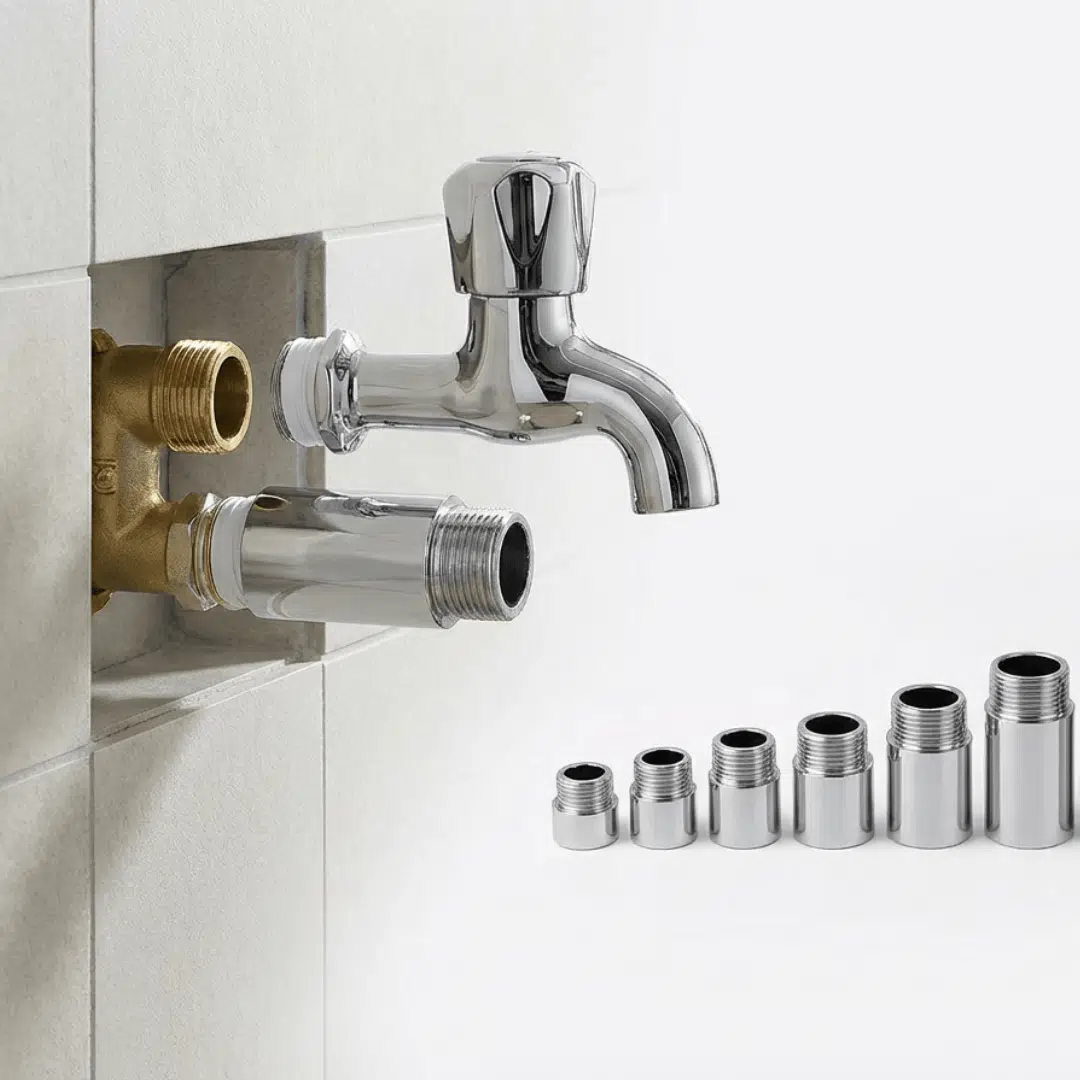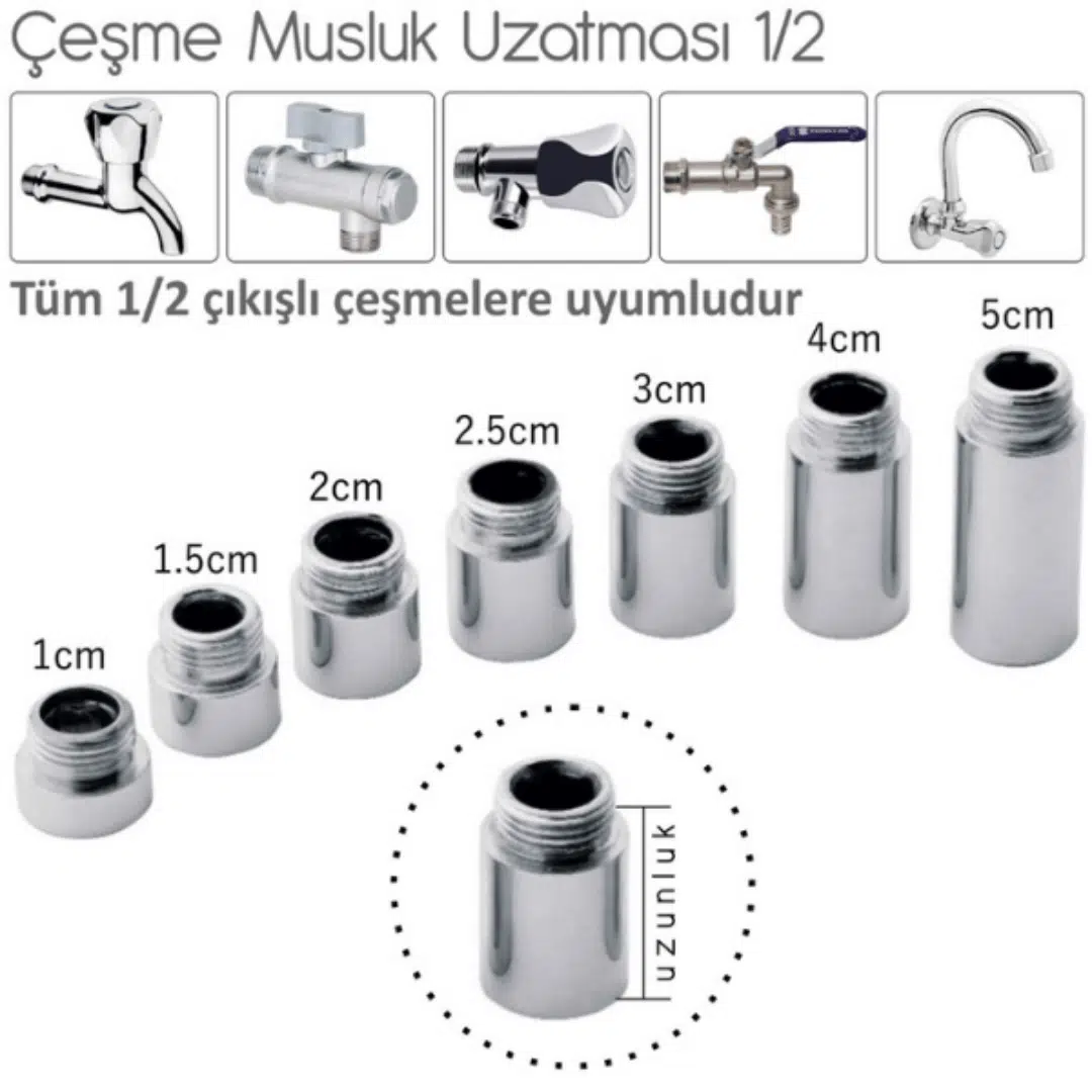 Duvara çok yakın kaldığı için musluğu rahat takamadığınız ya da bağlantı noktası “kısa” kaldığı durumlarda, tesisat çıkışını pratik şekilde uzatmak için kullanılır. Pirinç gövde üzerine uygulanan parlak krom kaplama; hem estetik bir görünüm sağlar hem de banyo/mutfak gibi nemli ortamlarda korozyona karşı ekstra koruma sunar.