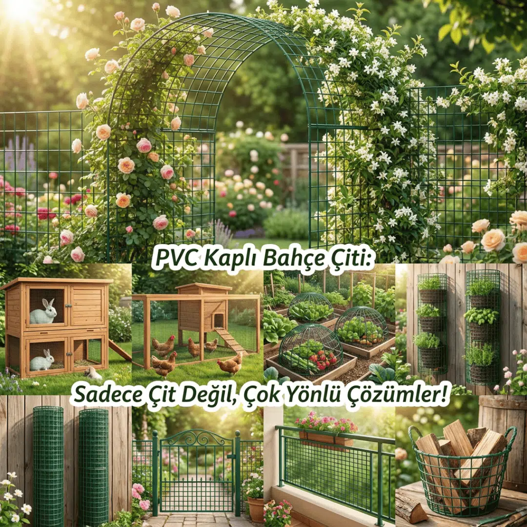 Bahçe, kümes ve açık alanlarınızda uzun ömürlü ve güvenli bir sınır oluşturmak için ideal bir çözümdür. Galvanizli çelik tel üzerine uygulanan yeşil PVC kaplama, dış ortam koşullarına karşı dayanımı artırırken estetik bir görünüm sunar. Puntalı (kaynaklı) birleşim noktaları ise çitin formunu korumasına ve daha sağlam durmasına yardımcı olur. Kurulumu pratik olup çevreleme, sınır belirleme ve güvenlik amaçlı kullanımlarda tercih edilir.